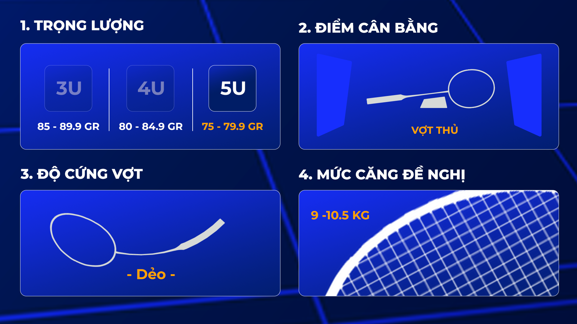 Đây là thông số khá quan trọng trong việc lựa chọn vợt cầu lông phù hợp cho người mới chơi.