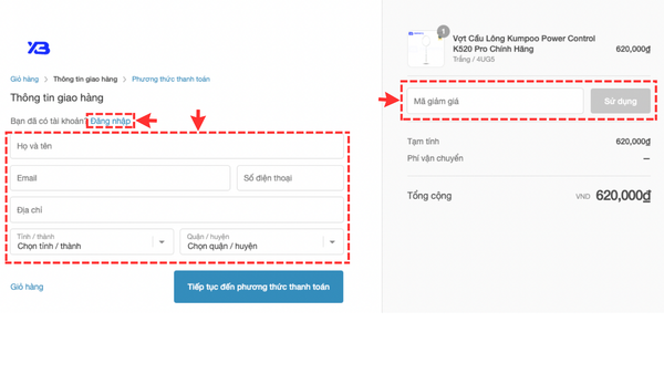 - Khách hàng có thể nhập "Mã giảm giá" (nếu có) để nhận được ưu đãi.