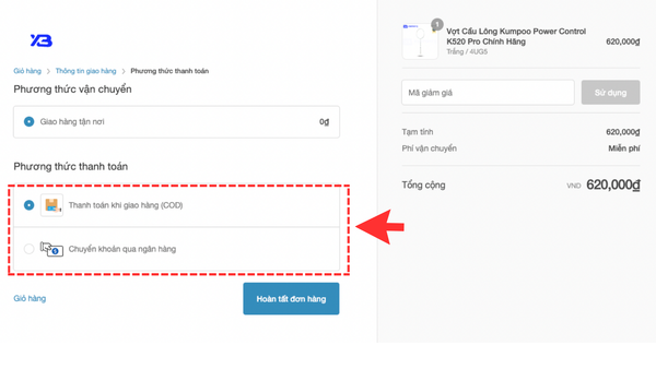 - Thanh toán khi nhận hàng (COD).