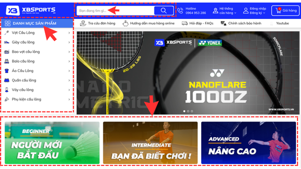 - Cách 3: Tìm kiếm sản phẩm bằng cách chọn các combo có sẵn tại XBSPORTS.VN theo trình độ.
