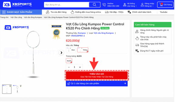 - Ở bước này, sau khi khách hàng chọn được sản phẩm muốn mua, khách hàng sẽ cần click "Thêm vào giỏ hàng" để tiến hành chọn sản phẩm.