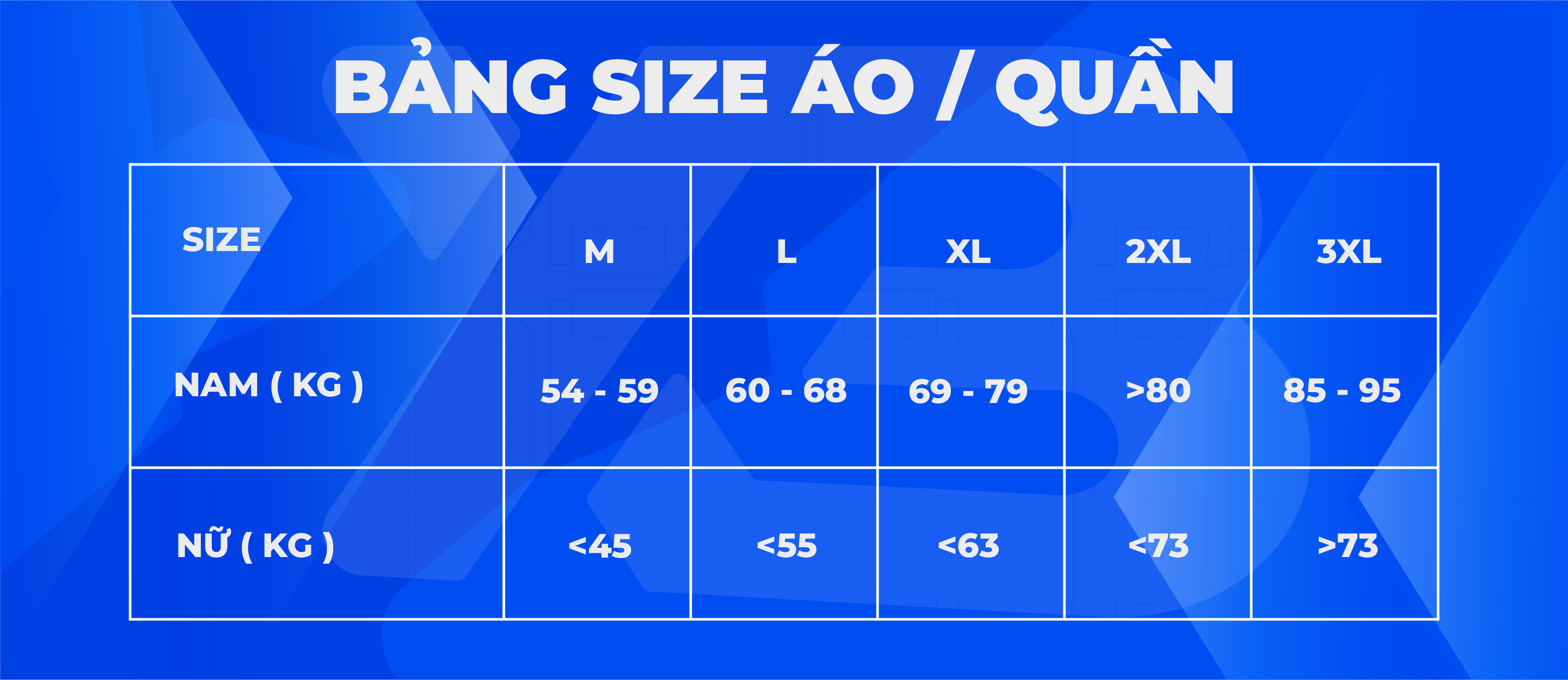 2/ BẢNG SIZE ÁO CẦU LÔNG KAMITO VTT GOWO