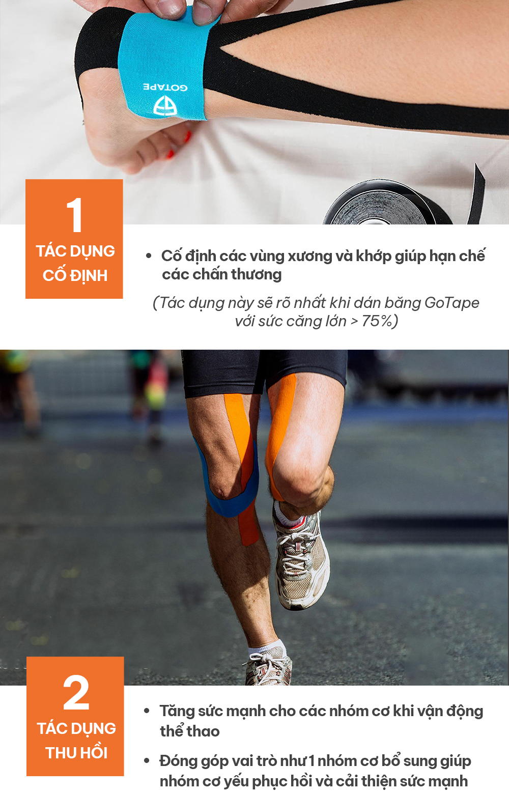 Giúp tăng sức mạnh cho các nhóm cơ khi vận động thể thao, đặc biệt các trường hợp có cơ bị yếu dài hoặc bị co ngắn, băng dán cơ GoTape đóng góp vai trò như 1 nhóm cơ bổ sung giúp nhóm cơ yếu phục hồi và cải thiện sức mạnh đáng kể khi vận động.