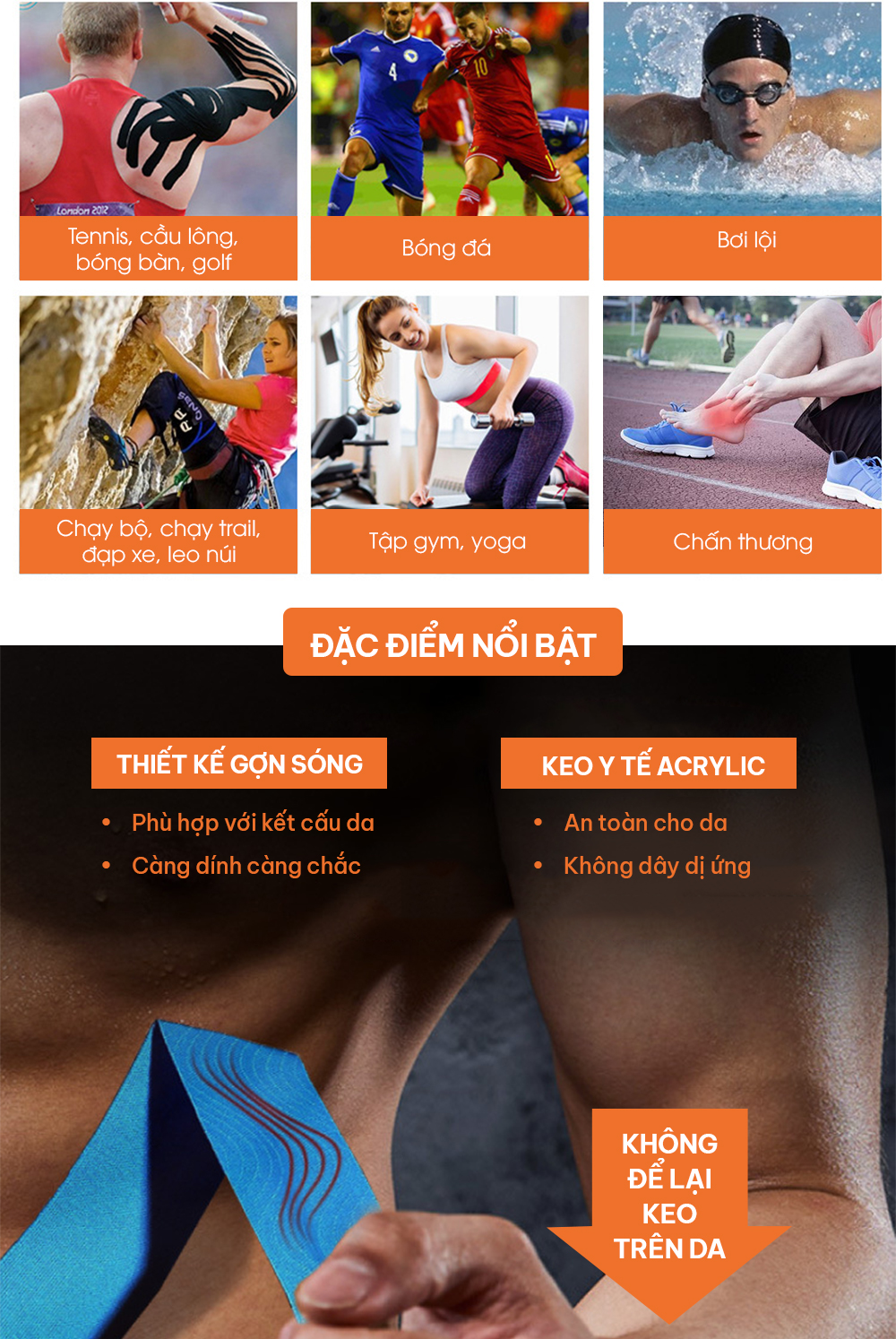 *Các môn thể thao có thể sử dụng băng dán cơ GoTape
