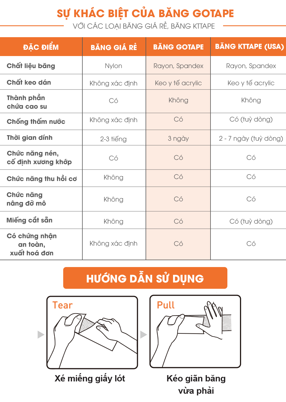 - Tác dụng thu hồi của băng GoTape (các dòng băng thông thường không có)