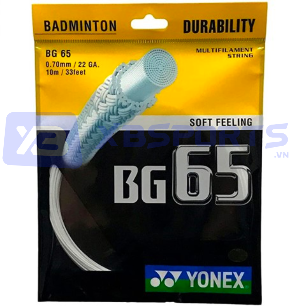 - Yonex BG 65 đáp ứng đủ tiêu chí rẻ - bền - chất lượng. Với những bạn tay khỏe, sức căng lớn và đánh cường độ cao thì có thể dùng hơn 1 tháng, còn với những bạn mới tập chơi, chơi phong trào thì rất khó để đánh đứt được cước 65, nhưng khuyến cáo sau 1,5~2 tháng sử dụng cước sẽ bị chùng, nên cần cắt đi đan cước mới để có những đường cầu chuẩn nhất trên sân.