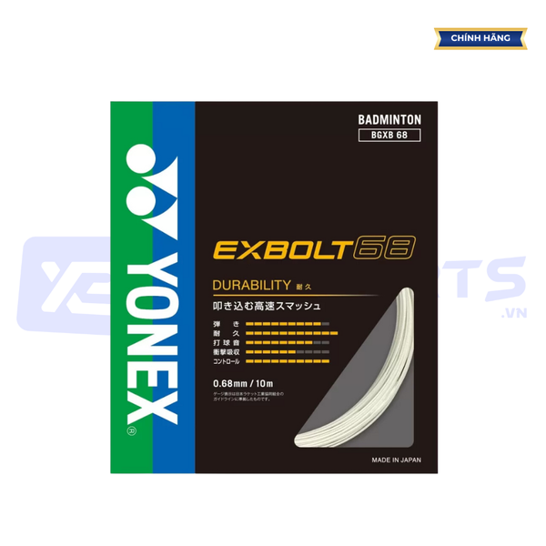 Dây cước căng vợt Yonex BG EXBOLT 68 (Mã JP) là một loại cước cầu lông chất lượng cao với nhiều ưu điểm vượt trội. Đây là lựa chọn tuyệt vời cho người chơi ở mọi trình độ, đặc biệt là những người chơi muốn có một loại cước bền bỉ, trợ lực tốt và độ kiểm soát cao.