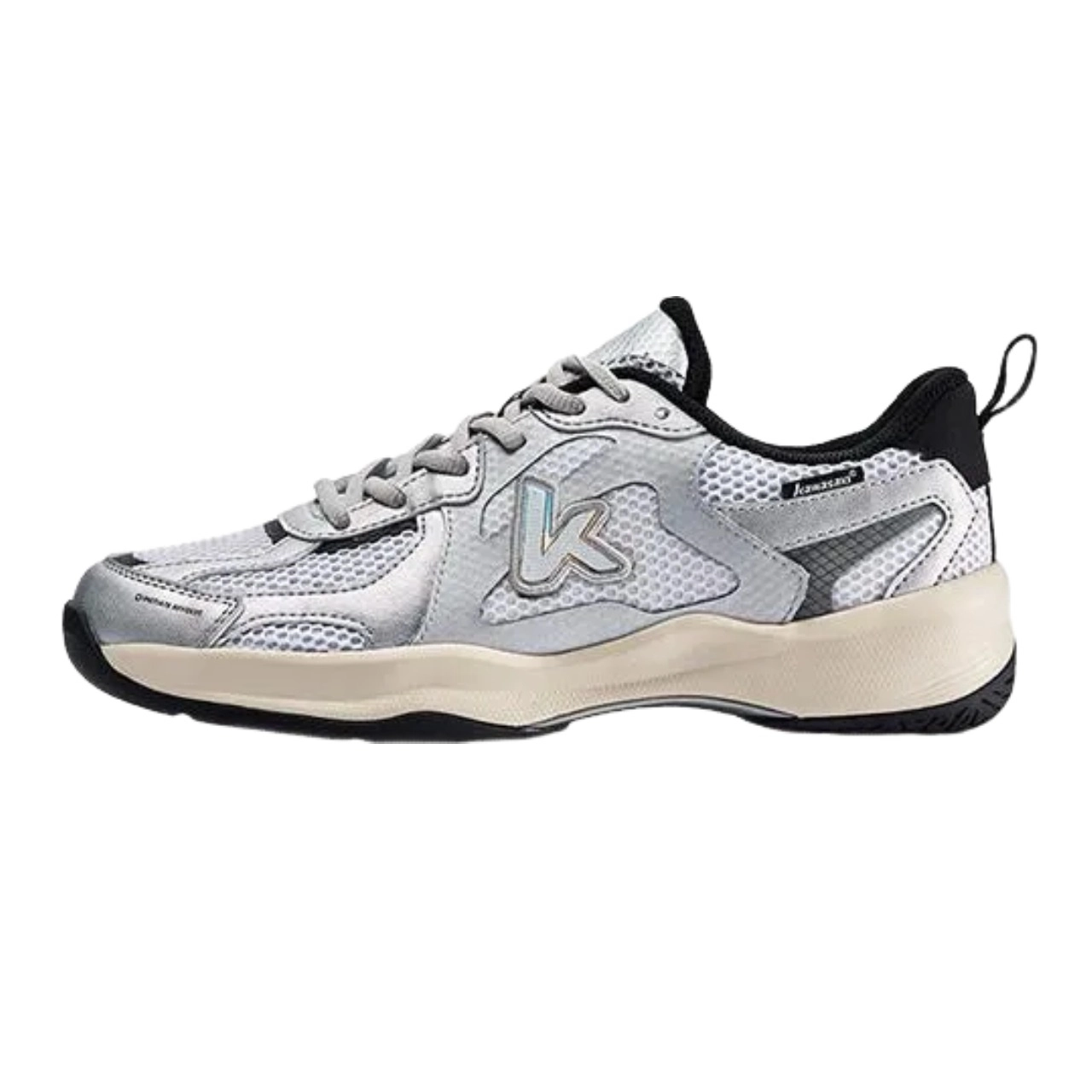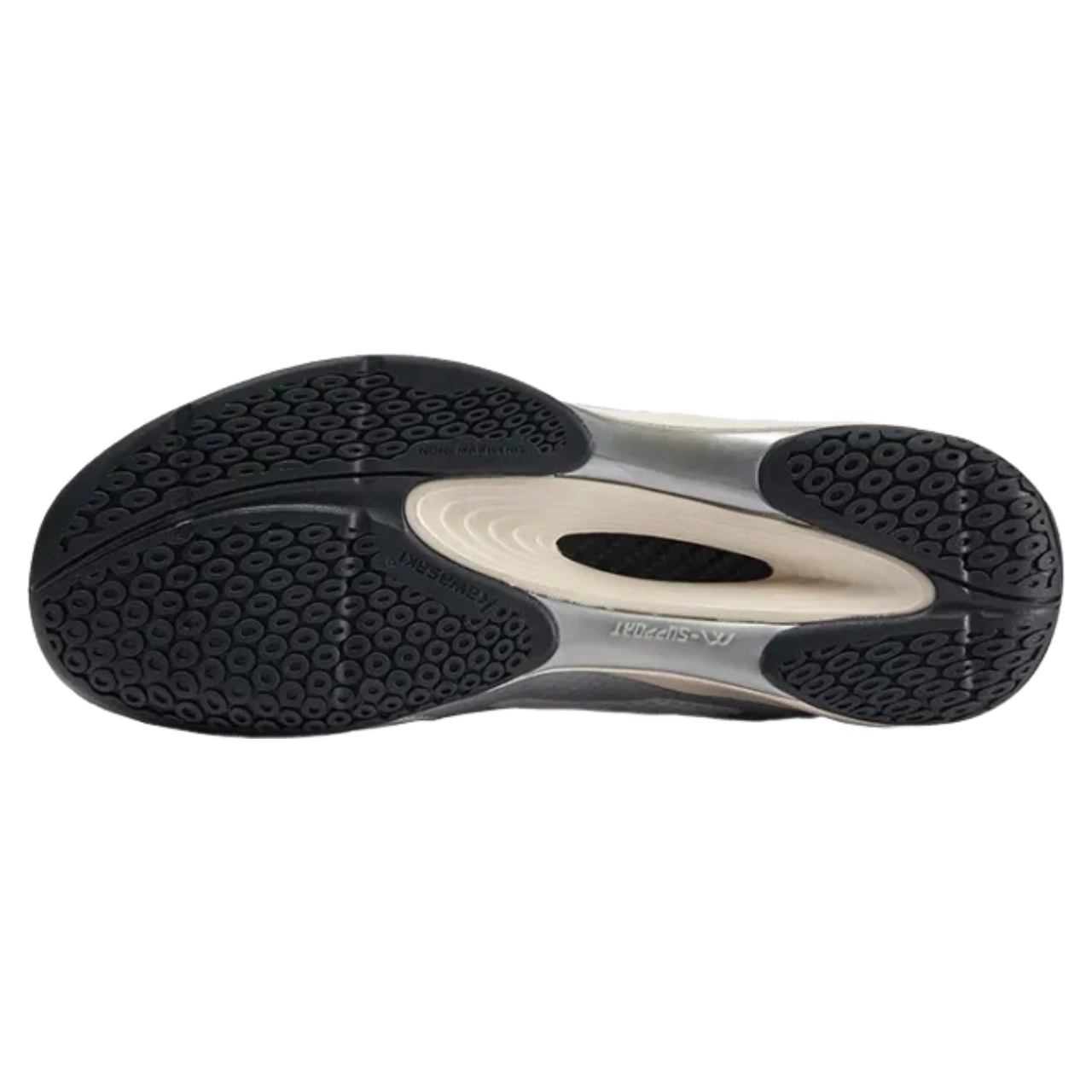 Phần Outsole (Đế ngoài): Được làm từ cao su tự nhiên có khả năng chống mài mòn vượt trội. Chất liệu này đảm bảo độ bám sân cực tốt trên nhiều loại mặt sân khác nhau, từ sân thảm, sân gỗ đến sân bê tông (tuy nhiên, vẫn khuyến cáo sử dụng trên các mặt sân chuyên dụng để bảo vệ giày và tránh chấn thương).