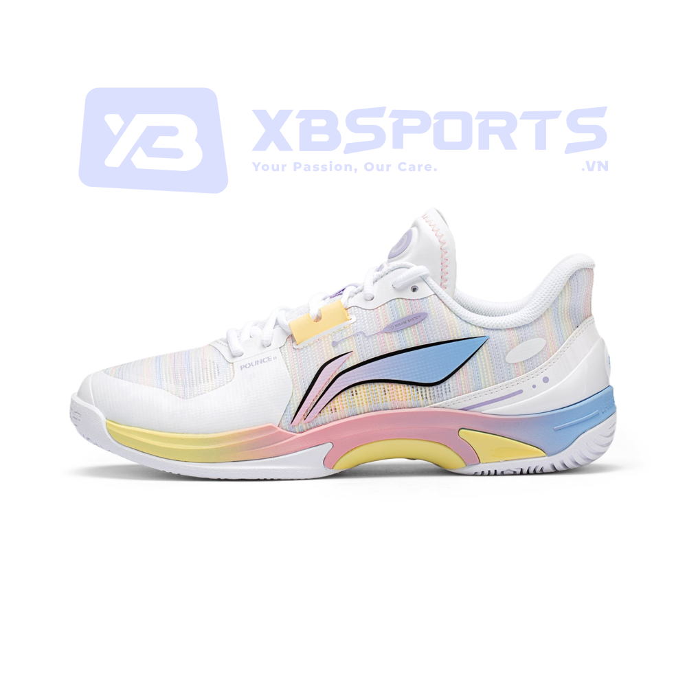 Khác với vẻ ngoài tối giản của mã 013-2, Li-Ning P-AYTV013-1 là một bản tuyên ngôn về sự năng động. Với phối màu chủ đạo là tông Trắng tinh khôi, đôi giày tạo được điểm nhấn mạnh mẽ nhờ các chi tiết màu Hồng và Vàng rực rỡ ở logo, gót giày và viền đế.