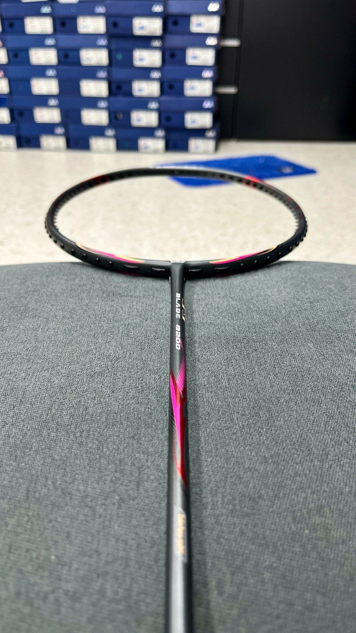 - Chất liệu đũa vợt: Japan Ultra High Modulus Carbon Graphite