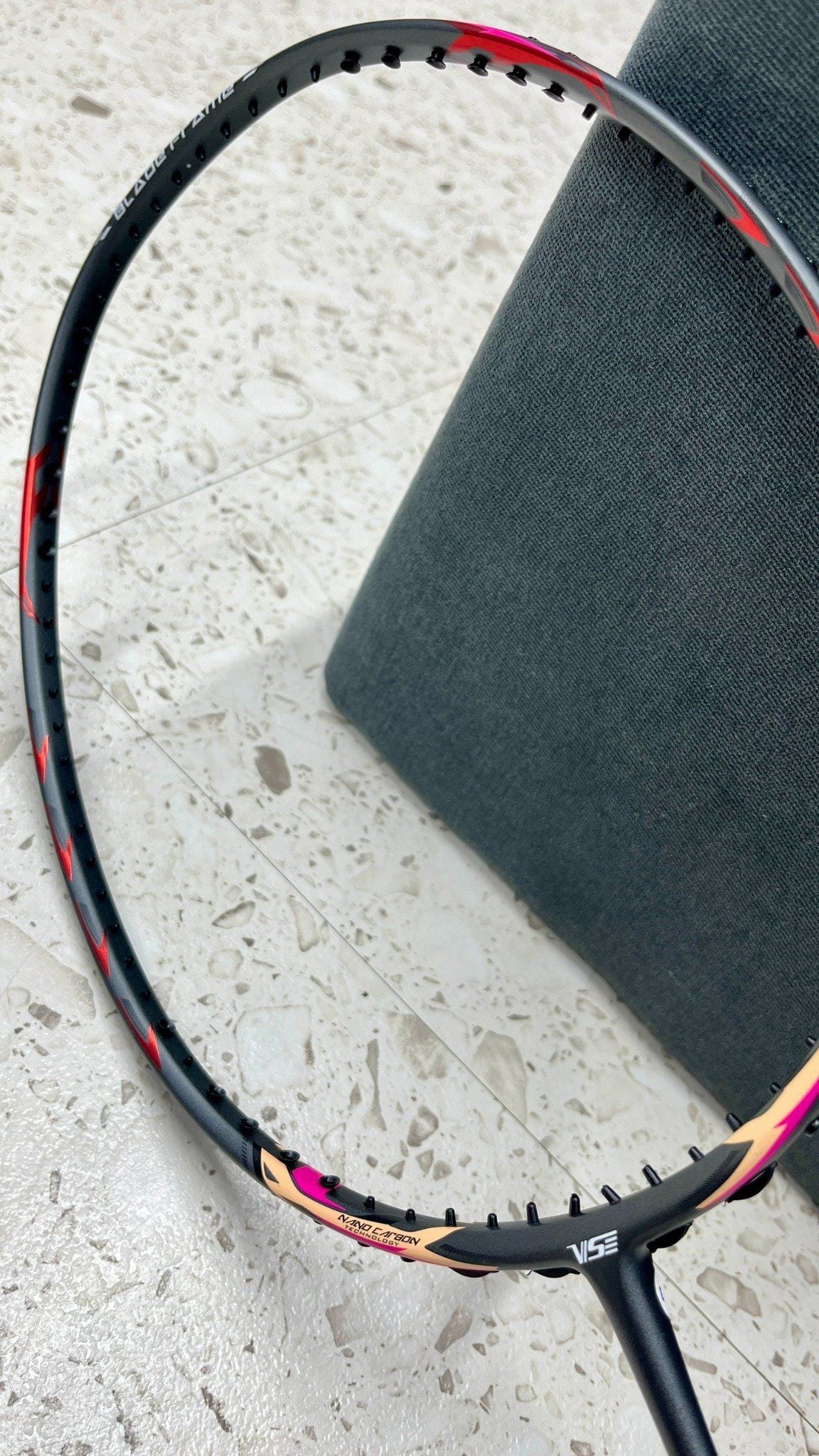 Nano Resin: Việc sử dụng nhựa trong các hạt nano để phủ lên bề mặt than chì để phân tán trong các khoảng trống của các phân tử lớp than chì. Nó tăng cường độ dẻo dai của than chì và cũng làm tăng tính linh hoạt của than chì. Tạo nên bộ khung deo dai và chắc chắn hơn cho cây vợt cầu lông VS Blade 8200.