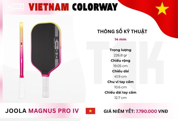 Bài viết này sẽ đi sâu vào phân tích công nghệ lõi tiên tiến, thiết kế khí động học và lý do tại sao vợt Joola Magnus Pro IV Vietnam Colorway 2025 là lựa chọn tối ưu cho những ai mong muốn thống trị sân đấu bằng sức mạnh và tốc độ.